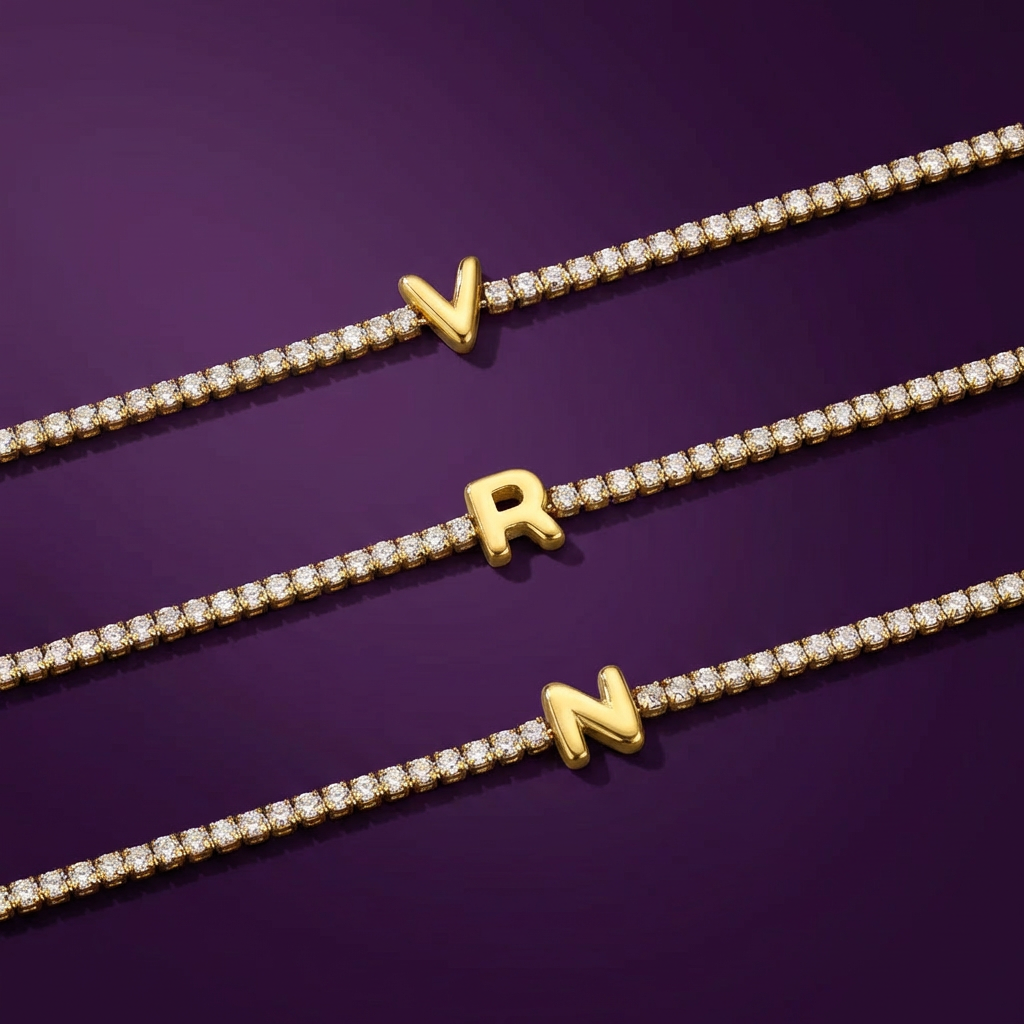 The Timeless Initial Tennis Collection was designed to celebrate identity across generations.