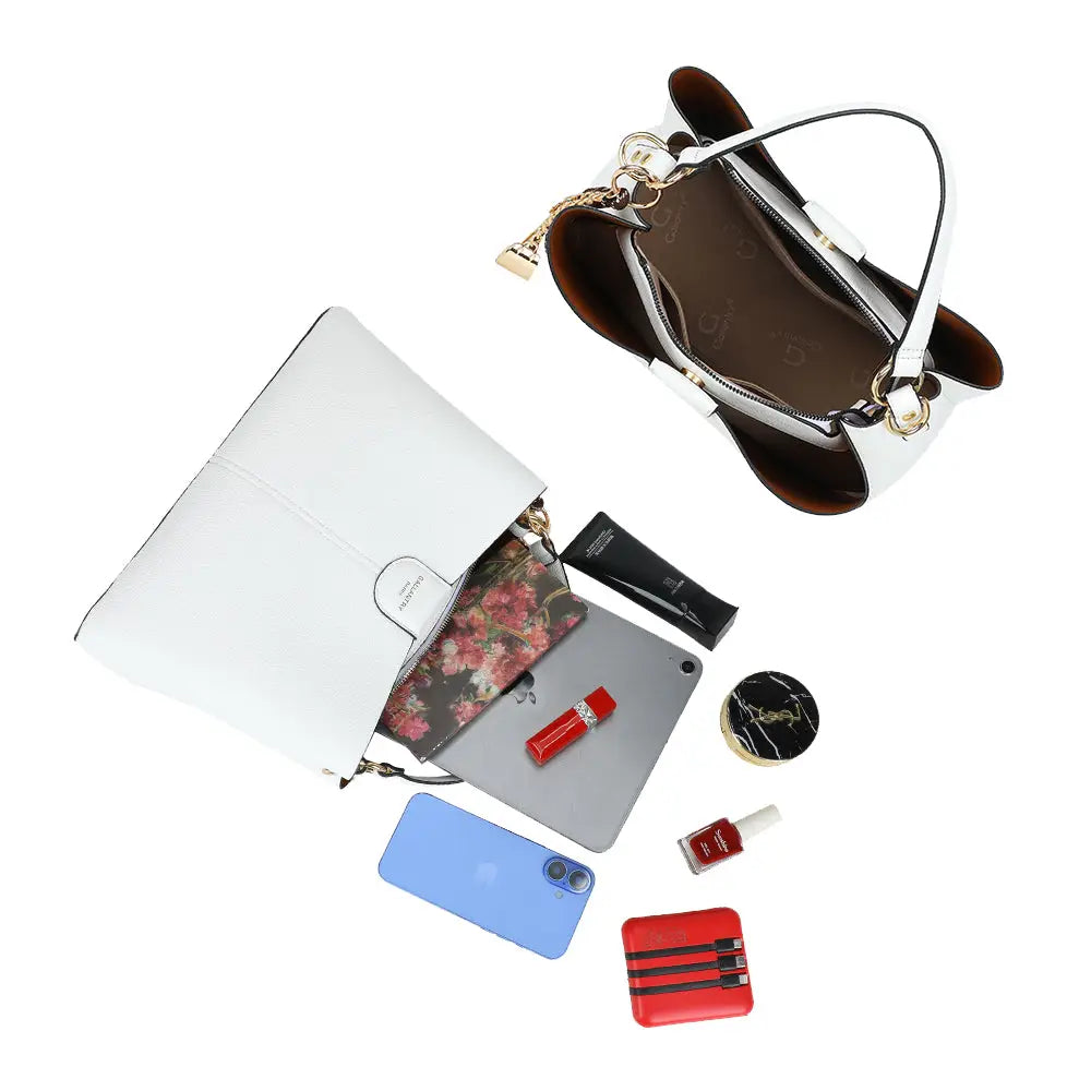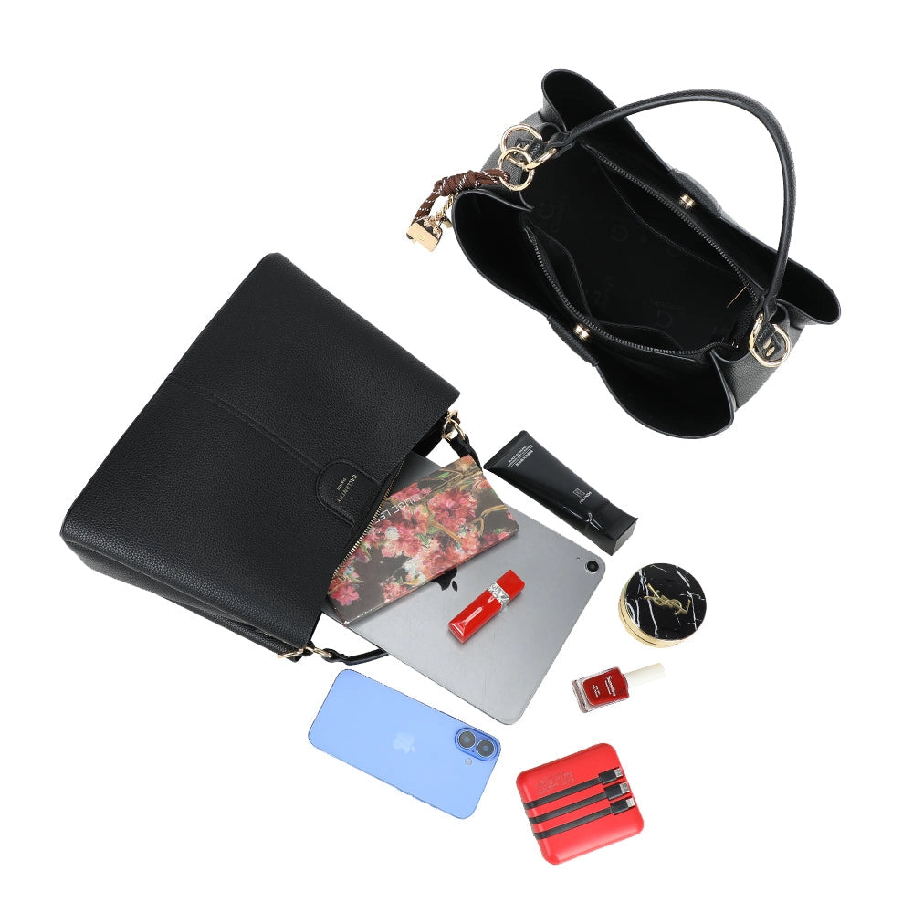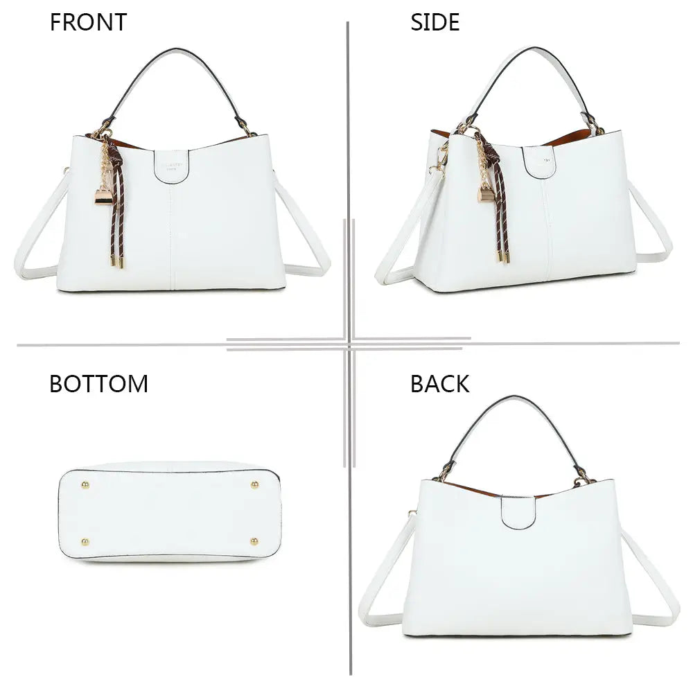 Designed to combine style and practicality, this bag features a spacious and well-organized interior, ideal for carrying your essentials with ease. Its decorative tassel and chain detail adds an extra touch of sophistication, making this bag an essential accessory to elegantly complete your outfits.