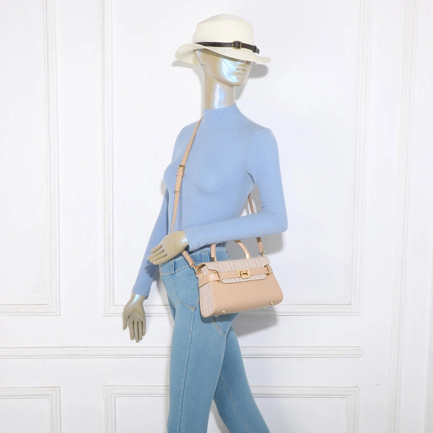 Inspired by our iconic Lysia model, Lysia Tressée offers a textured and boldly elegant variation. This small structured bag harmoniously combines smooth faux leather with a refined woven-effect flap, for a look that is both modern and timeless.